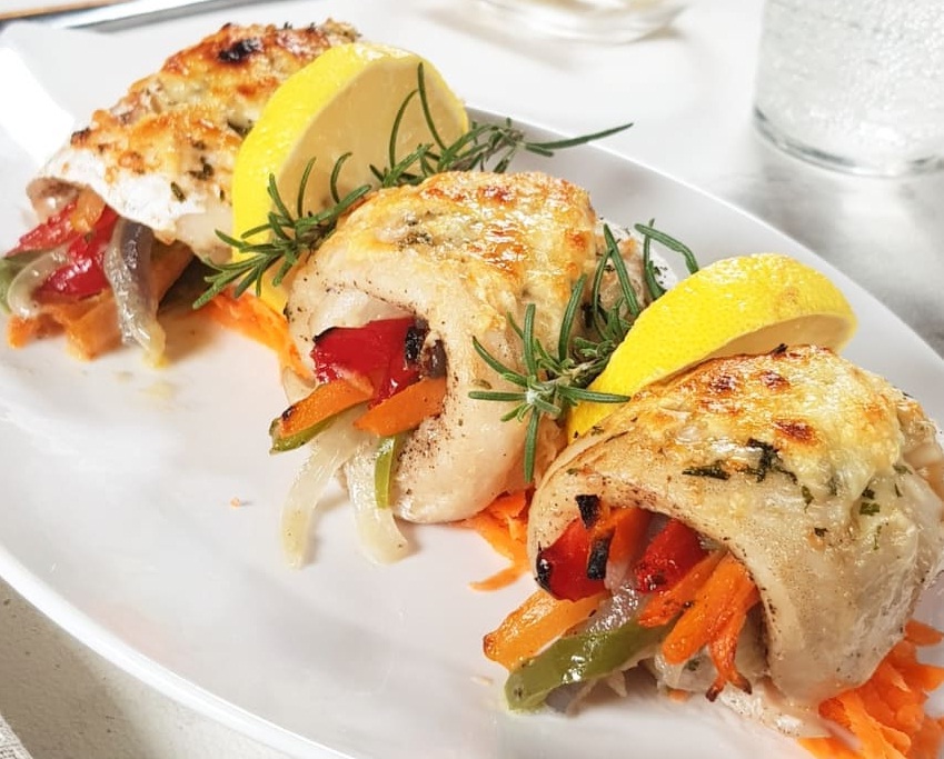 Rolls de merluza con vegetales