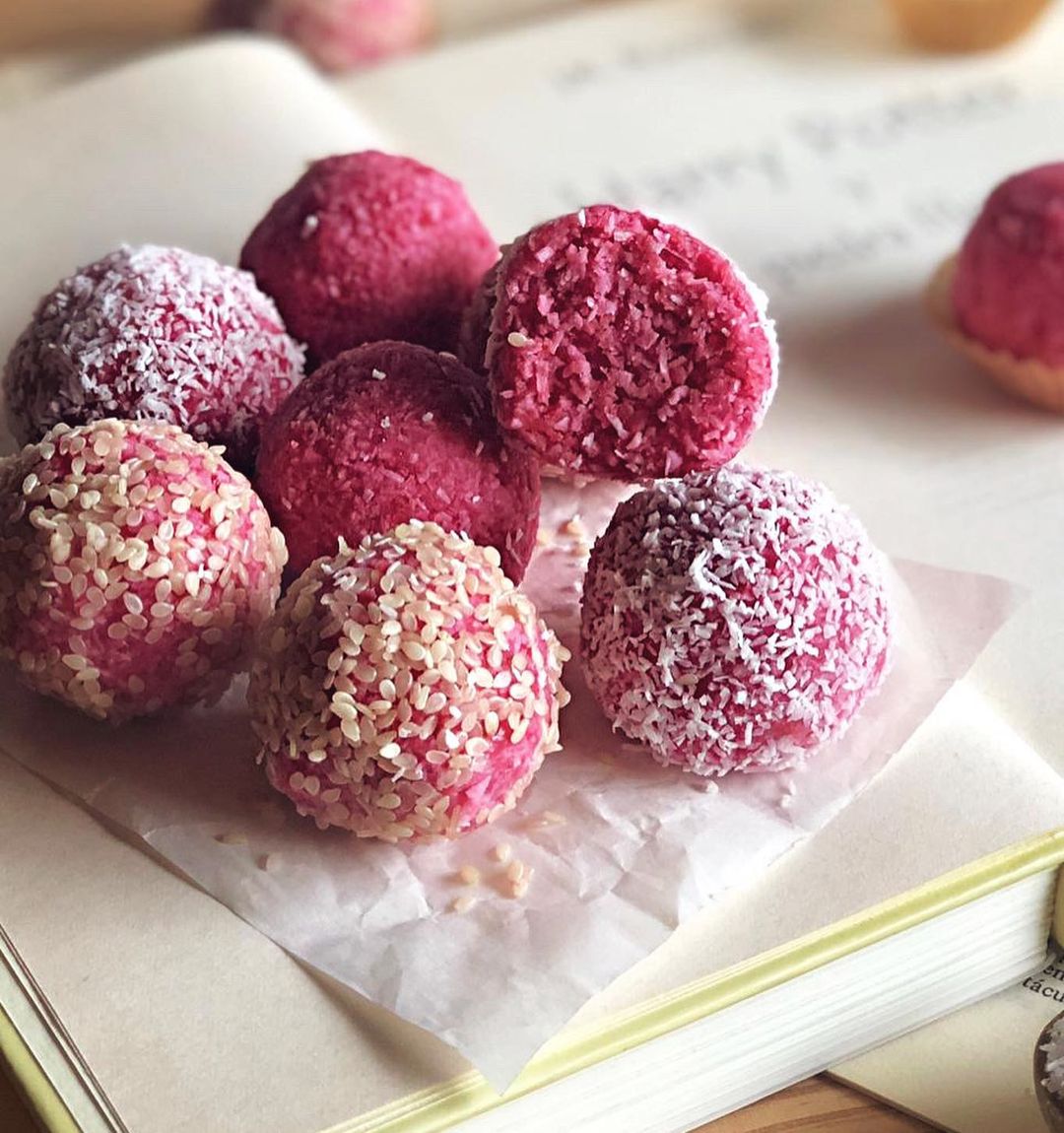 Procesar garbanzos junto con la remolacha. Agregar el chocolate derretido, la miel y el coco. Integrar todo. Llevar a heladera 15-20 minutos, luego retirar y armar bolitas. Rebozar con coco rallado o semillas de sésamo.