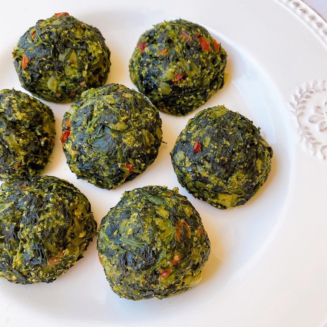 Picar la cebolla, el morrón y la acelga. Saltear todo en una sartén caliente con un poco de aceite. Incorporar todo en un bol junto al huevo, queso, avena, condimentos y sal. Mezclar todo y formar las bolitas con las manos. Colocarlas en una fuente previamente engrasada y llevar al horno moderado durante 25 minutos.