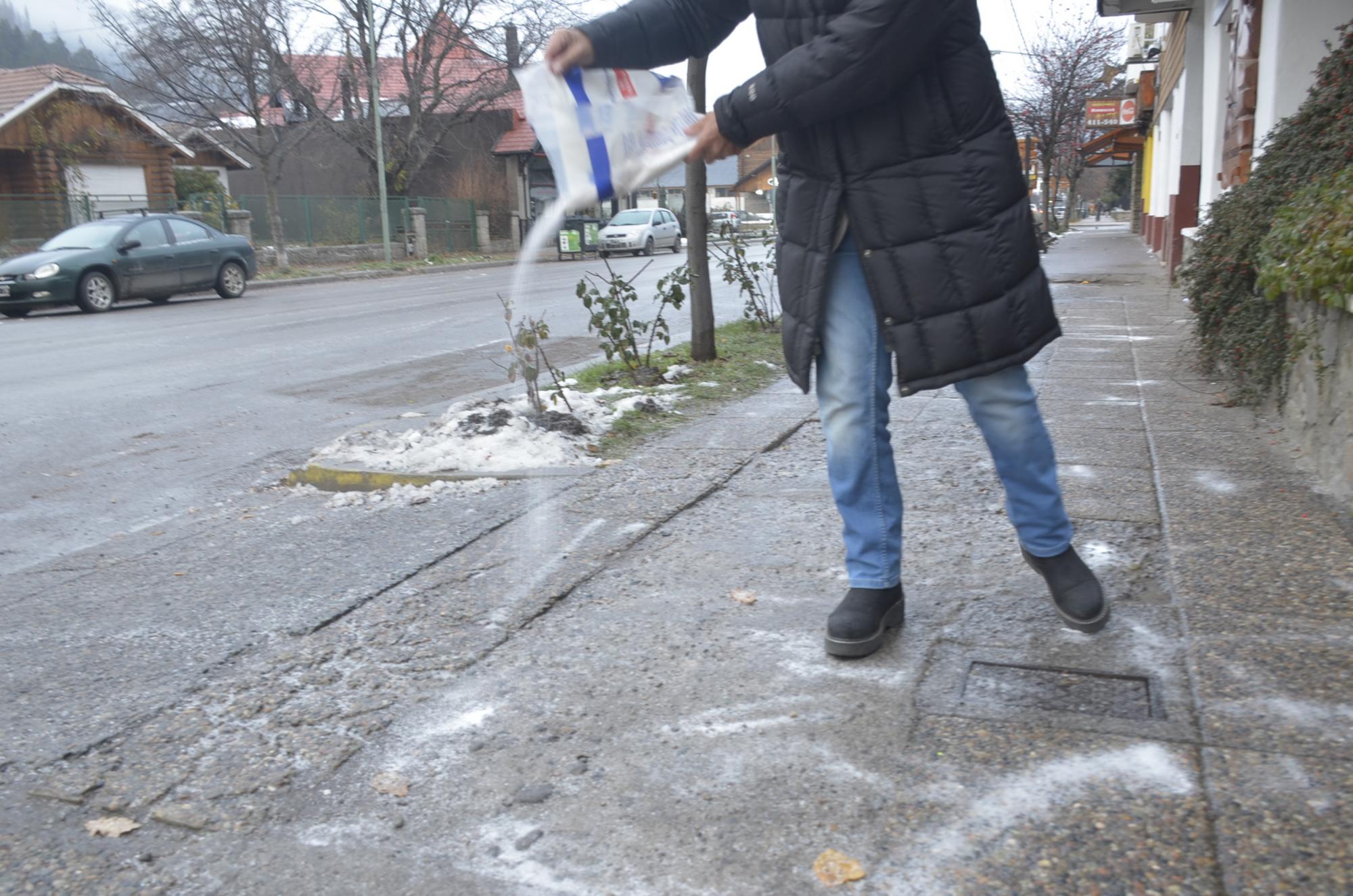 El hielo también se presentó en las calles de San Martín de los Andes, donde el transporte urbano Expreso Los Andes circula con demoras por esta situación.
