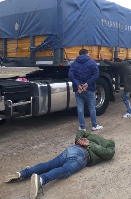 Se advirtió la presencia del camión marca Volvo con acoplado el cual detuvo su marcha, en actitud sospechosa. Luego de unos minutos arribó la pareja en un Volkswagen Gol y al momento de producirse la entrega de la droga, efectivos policiales intervinieron para inmovilizar a quienes participaban de esta entrega.
