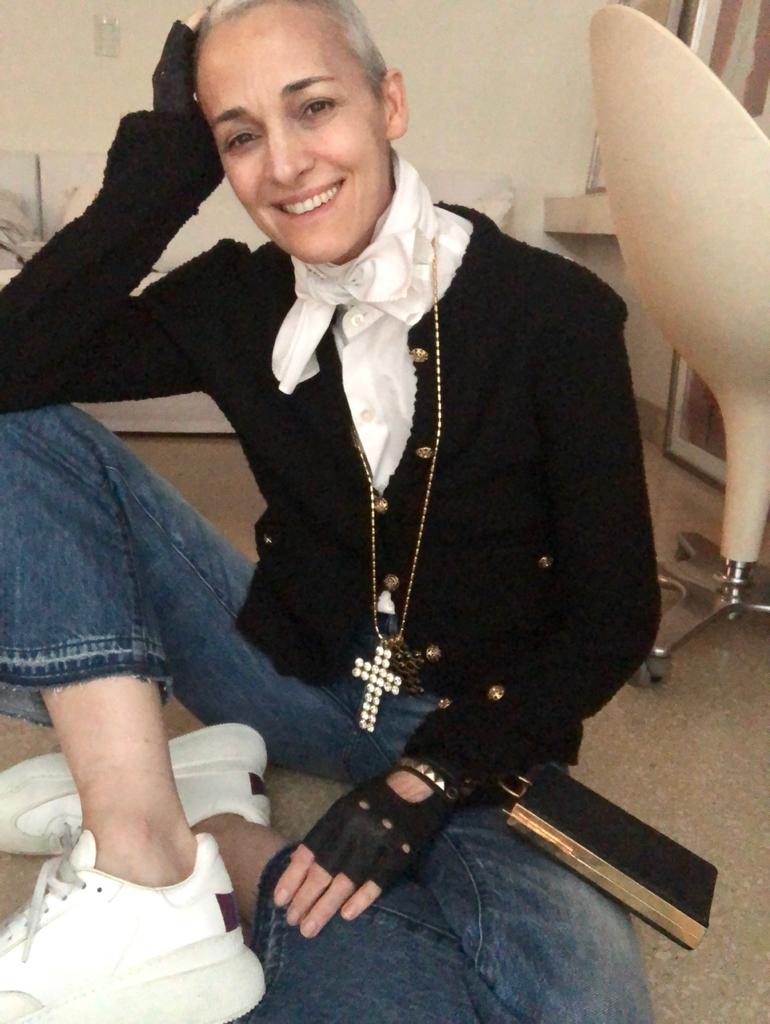 Mi tratamiento empezó en diciembre. Sabía que en Europa el tema del coronavirus se estaba instalando. Es más, me llamaba la atención que los turistas entraban a nuestro país sin ningún tipo de control por esos días. “¡Qué loco esto que nadie tome cartas sobre el asunto!”, pensaba. Mis internaciones eran de 5 días seguido, 24 horas de quimioterapia, cada 20 días. Fueron muy duras y fuertes. Estuve muy guardada y me tuve que cuidar antes que todo el mundo con más razón. Tenía que tener cuidado extremo de los contagios, de no estar con gente, de no ir a lugares públicos. Mi confinamiento empezó en diciembre. Me pelé tras la primera quimio. Decidí que ese iba a ser mi look. Y que me iba a ayudar a asumir más rápidamente la situación. Lo tomé con soltura; quizás me ayudó el que sea estilista y pensar que diferenciarse es una cualidad.