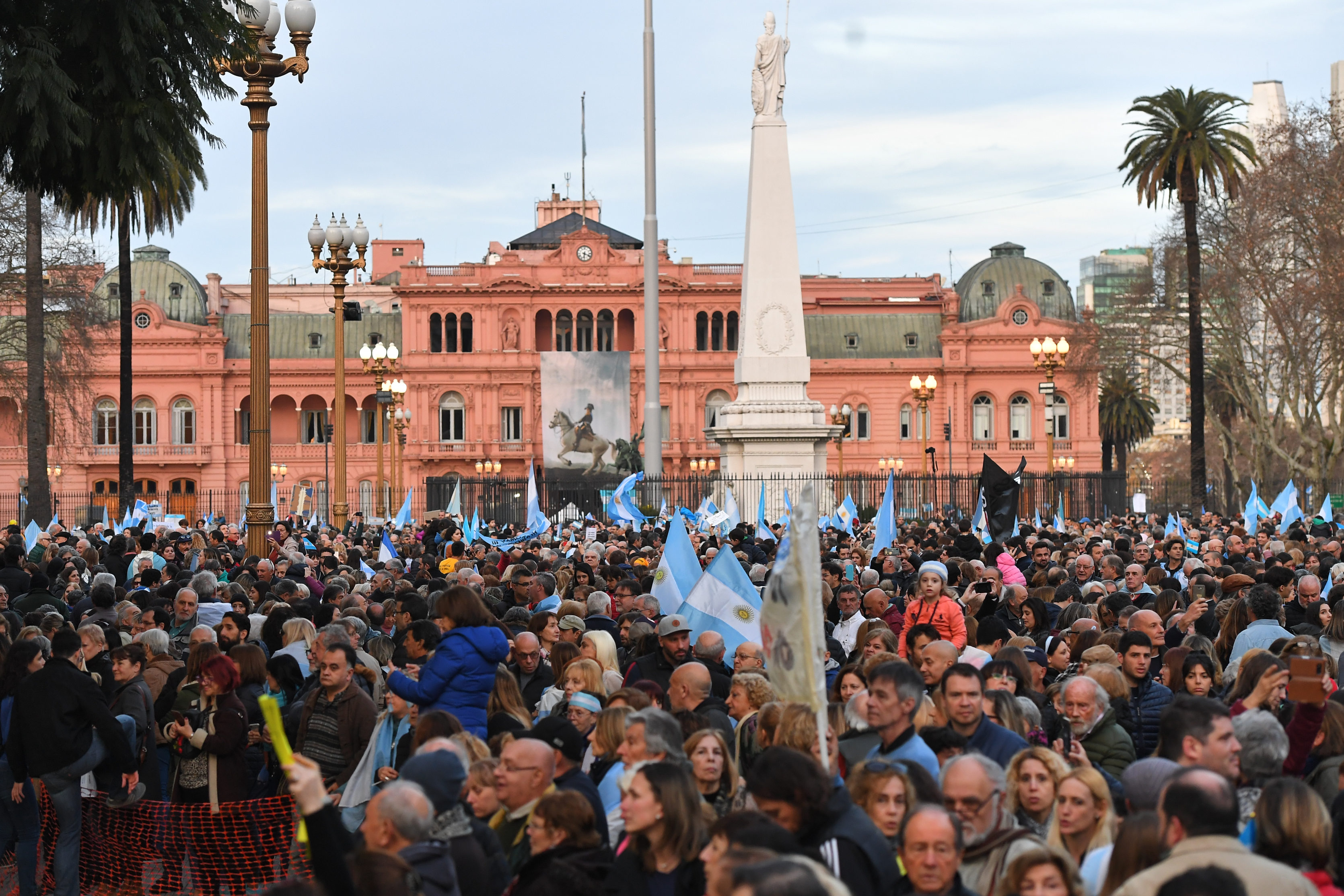 La movilización se había iniciado a las 17 en el Obelisco, desde donde la concentración marchó por Diagonal Norte hacia la Plaza de Mayo, bajo consignas como «Vamos a darla vuelta» y «Defendamos la República».