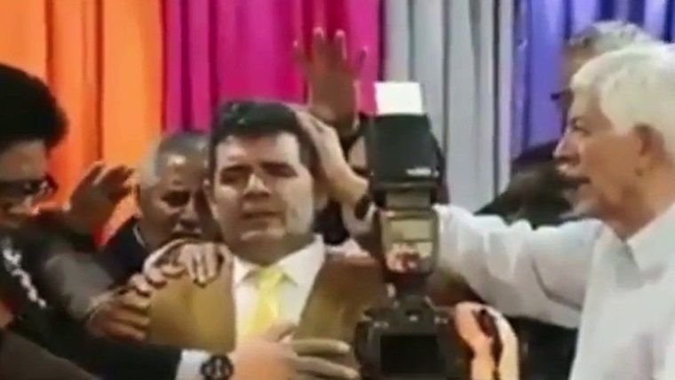 Según se puede ver en un video que circuló por las redes sociales, la estructura se vino abajo justo cuando terminó la ceremonia, mientras todos se abrazaban y gritaban “viva la Patria”. “No van a poder borrar los principios y valores cristianos de esta Nación y no se van a meter con nuestros hijos”, dijo el pastor al bendecir a Olmedo, de acuerdo con lo que quedó grabado.