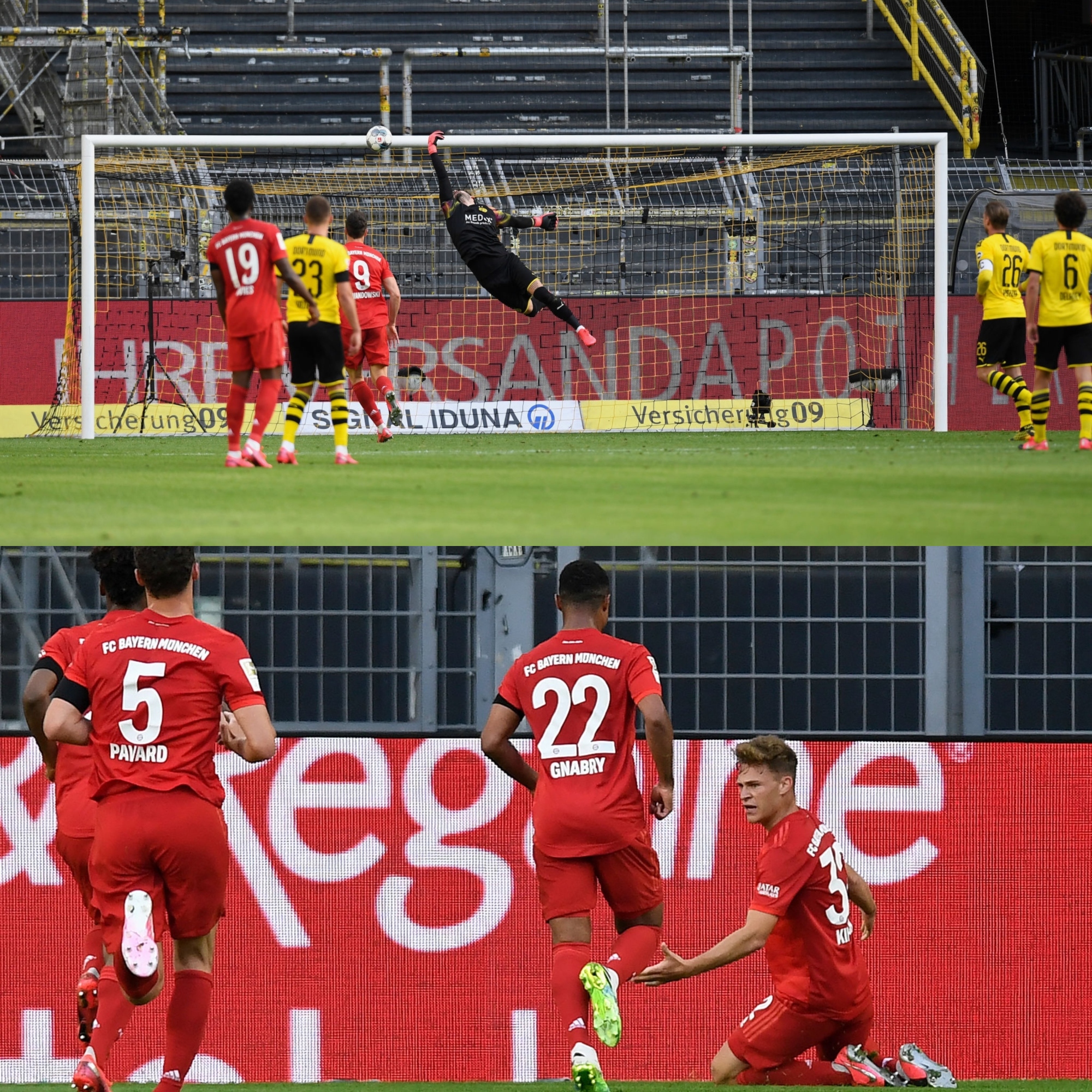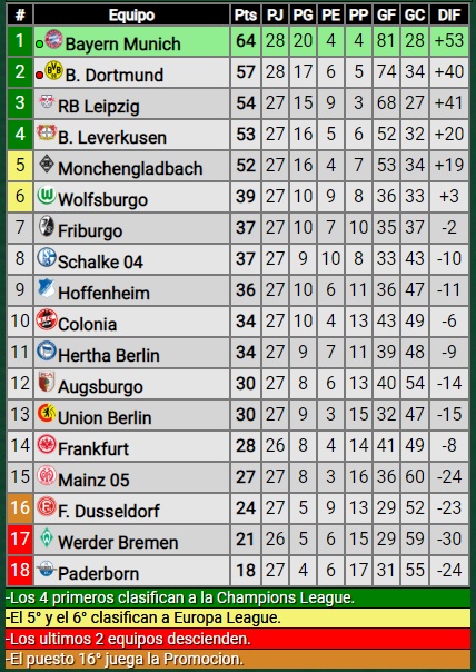 El historial entre ambos marca 48 triunfos del Bayern, 25 del Dortmund y 27 empates. La liga se reanudó hace 10 días a puertas cerradas y fue la primera de las importantes en volver luego del parate por la pandemia. Con el resultado, la tabla quedó así>