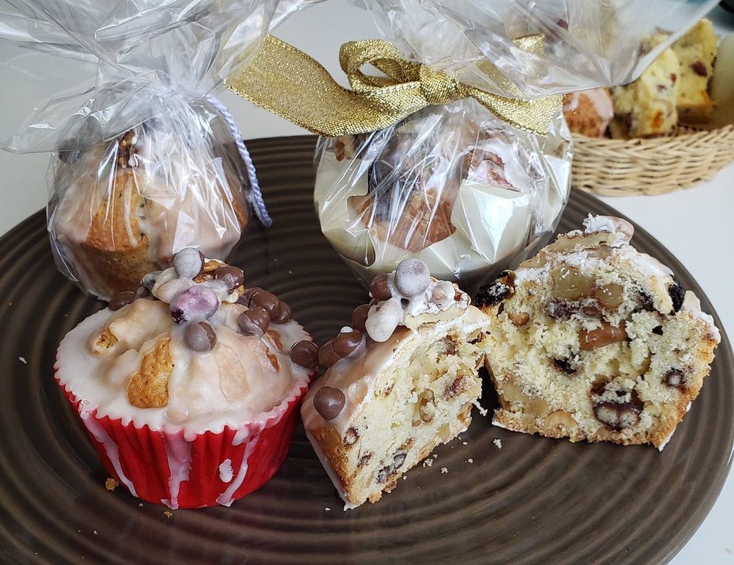 Poner en 12 pirotines de papel en una muffinera y llevar a horno 170° C durante 30 minutos. Mezlcar 200 g de azúcar impalpable con jugo de limón (ir agregando de a poco hasta que queda como una pasta). Bañar por arriba y decorar con más frutas secas (o lo que hayan puesto adentro). Envueltos duran hasta una semana bien fresco.
