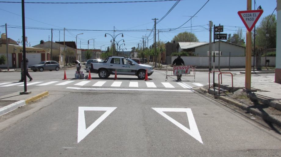 Esta semana se realizó el pintado de sendas peatonales en la intersección de la avenidas Río Negro y Juan Domingo Perón, por lo que al mismo tiempo se prevé una campaña de concientización sobre el adecuado uso por parte de los peatones y la detención de los vehículos para ceder el paso a quienes atraviesan caminando esa intersección.