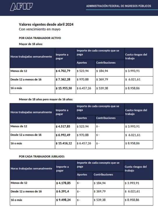 AFIP actualiza la escala de aportes salariales todos los meses y se publica oficialmente en la página del organismo, para que los empleadores puedan conocer los montos que deben abonar en estos casos. Por lo general, estas actualizaciones se acreditan con los aumentos salariales de las empleadas domésticas.