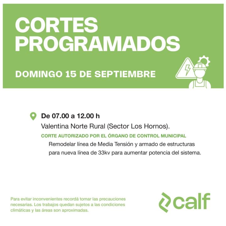 Desde la cooperativa CALF comunicaron los cortes del servicio eléctrico.