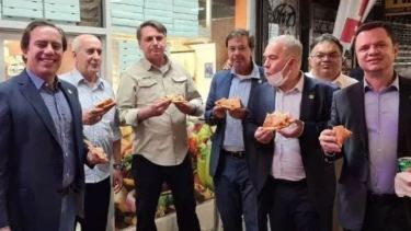 El ministro de turismo, Gilson Machado, publicó en sus redes una fotografía de Bolsonaro y varios de sus asesores comiendo en la vereda de una pizzería ubicada a 500 metros del hotel donde el Presidente se encuentra alojado desde anoche.