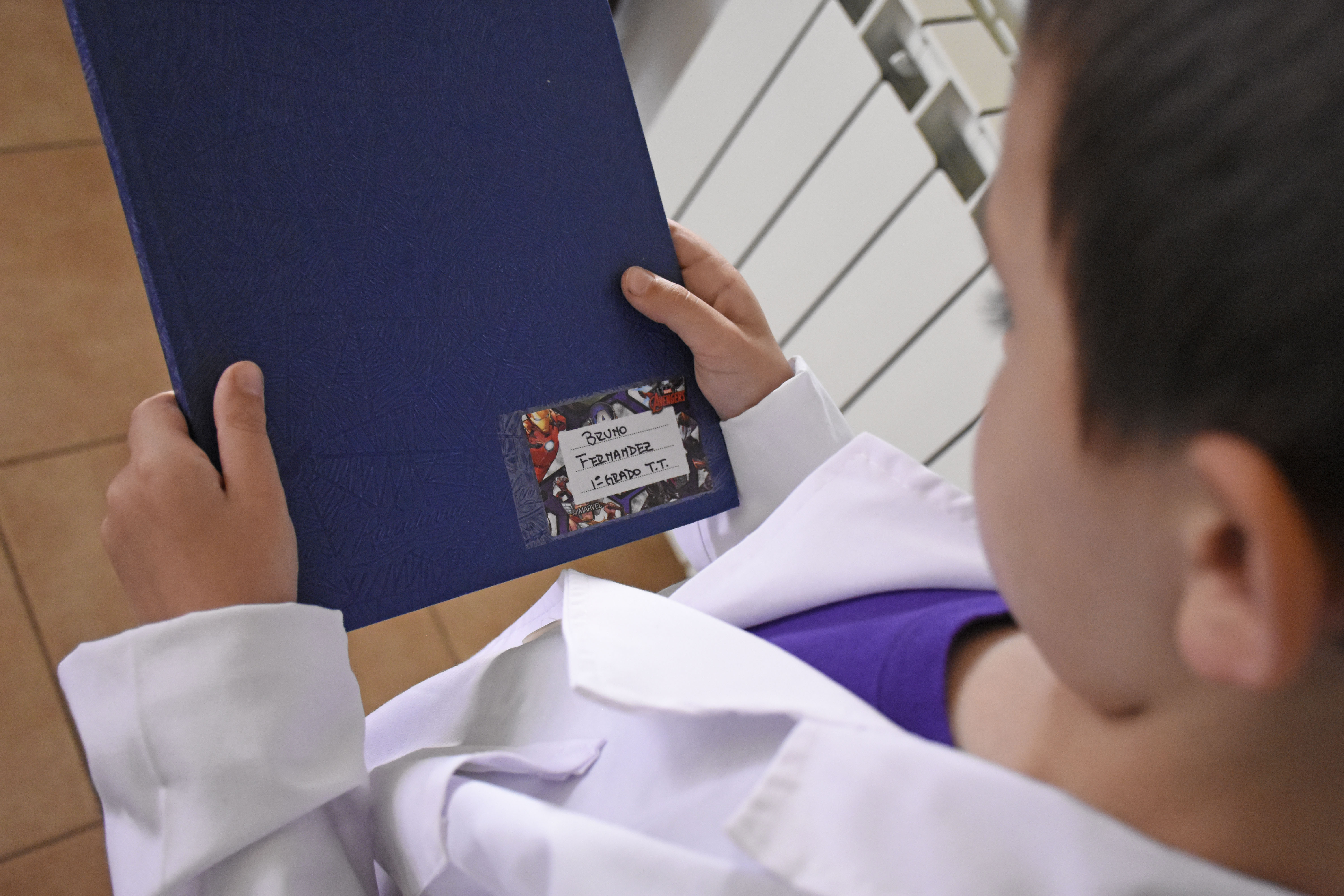 Bruno Martín Fernández, primer grado, turno tarde. Eso dice el rótulo del cuaderno Rivadavia tapa dura azul. “Estoy muy emocionada por esta etapa nueva, también veo lo grande que está. Es algo nuevo, es algo distinto”, afirmó Patricia, la mamá de Bruno, un niño de seis años que hoy tendrá su primer día de clases en la escuela pública. Irá a la 121, igual que su hermana, Abril, fanática del manga (cómic japonés) que dibuja con extraordinario talento.