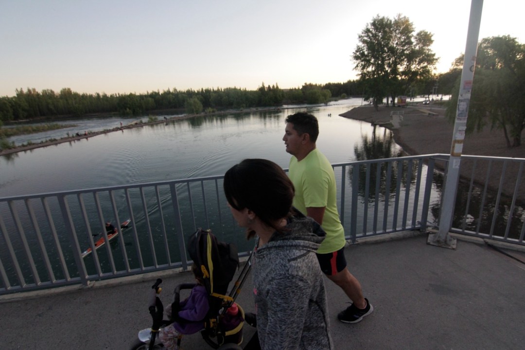 En toda su extensión, el Limay acompañó las personas que se acercaron a caminar, andar en bicicleta, pasearon a sus mascotas o solo compartir un agradable momento de cara al río.