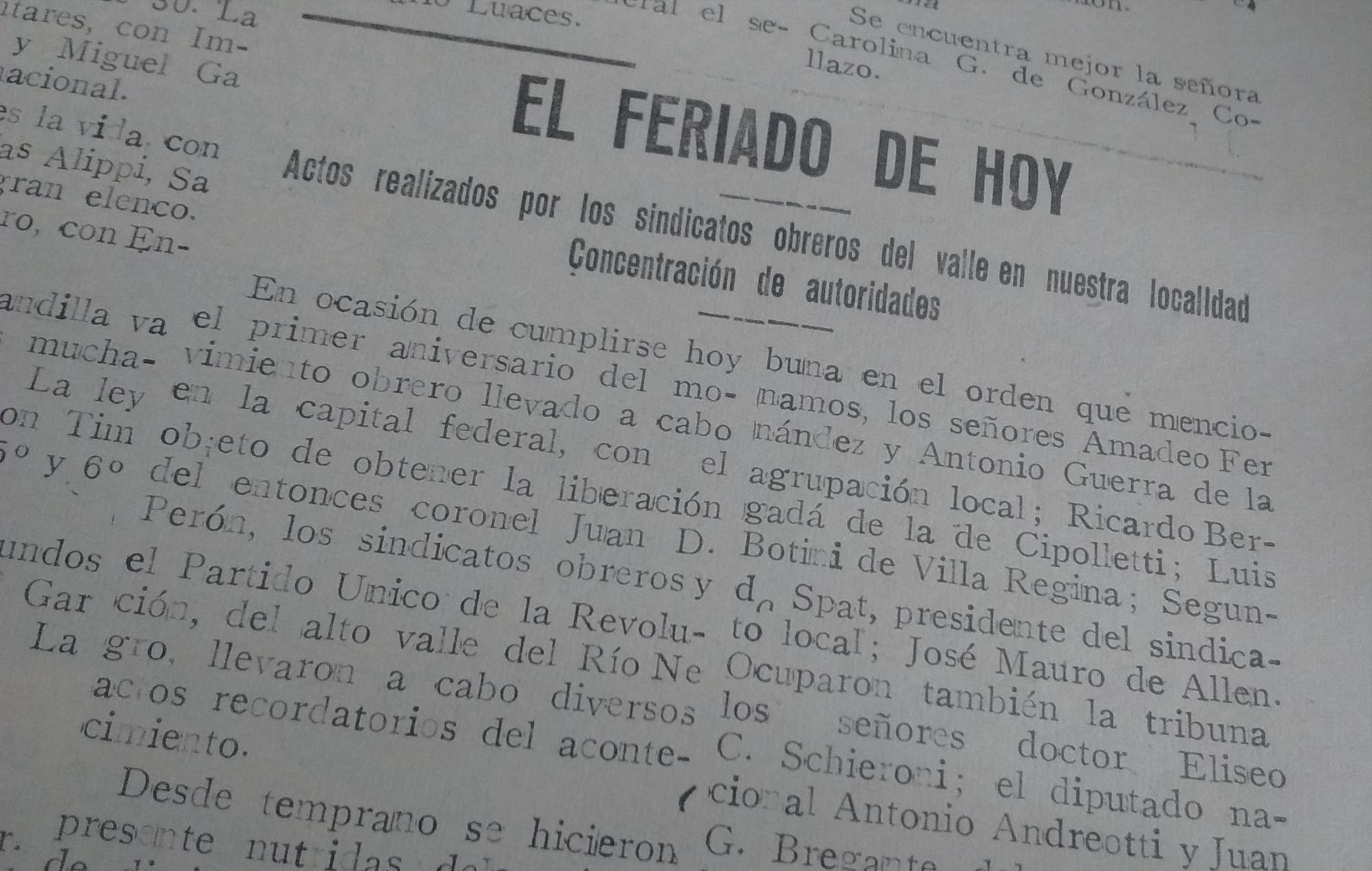 En aquella jornada estaba “trabajando en el ferrocarril en El Maitén. Siempre algún rico tenía una radio y pronto nos enterámos que habían largado al coronel Perón de Martín García. Nos dieron franco pago por el gobierno durante tres días seguidos y para todo el pueblo fue una alegría tremenda, comimos asado, bailamos para festejar con la animación de un compañero que tocaba el bandoneón, un tal Tissera, de Buenos Aires”.