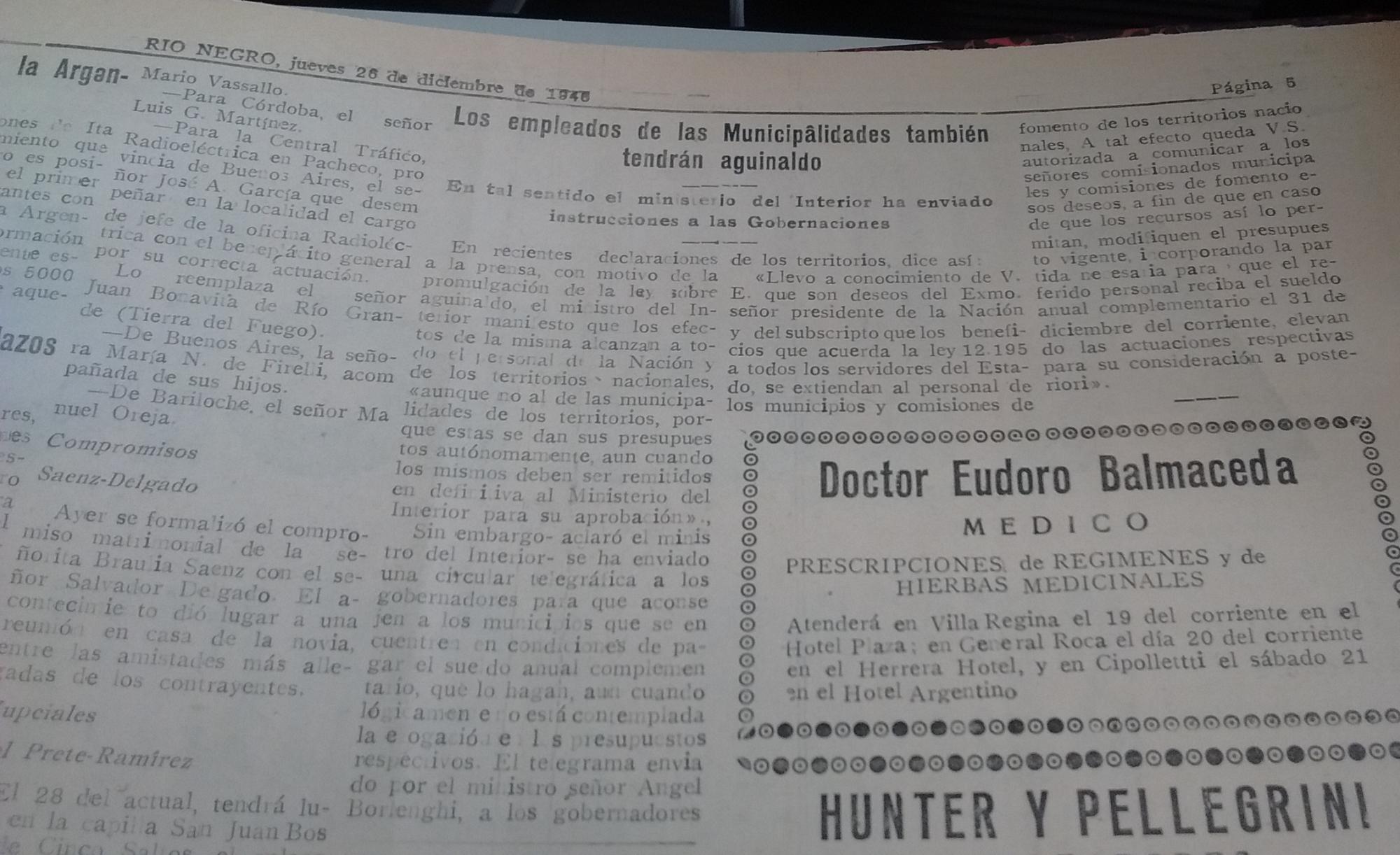 También se planificaba la construcción del hospital de General Roca; llegó el gas a nuestro Valle; y a nivel político se organizaba la UCR en Neuquén, luego de la visita de Ricardo Balbín.