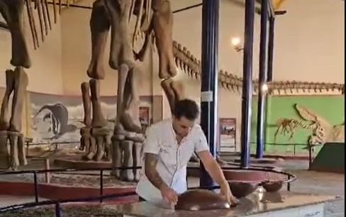 25 kilos de chocolate para emular al dinosaurio más grande hallado en Plaza Huincul