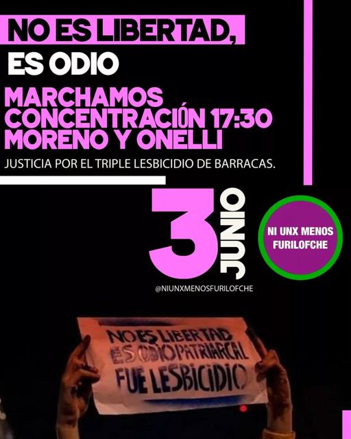 Bajo las consignas de: «Fue lesbicidio» por lo ocurrido en el barrio porteño de Barracas donde murieron como consecuencia de las quemaduras provocadas por el incendio de su hogar Pamela, Andrea, Mercedes y Sofía.