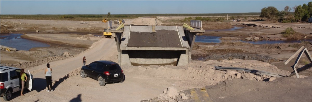 El pasado 8 de marzo, se cumplieron diez años de aquella descomunal crecida de este curso de agua que baja periódicamente desde la Meseta de Somuncura, y arrasó la estructura de hierro y cemento de 65 metros de largo. A un costado de la ruta, todavía quedan pedazos de guarda raid, de placas de cemento y de baranda de aquella estructura que se construyó en el 2008 entre los kilómetros 113 y 116 de la ruta nacional 23, en el marco de la obra de pavimentación de la principal vía de comunicación que conecta la cordillera con el mar, por el sur de la provincia de Río Negro.