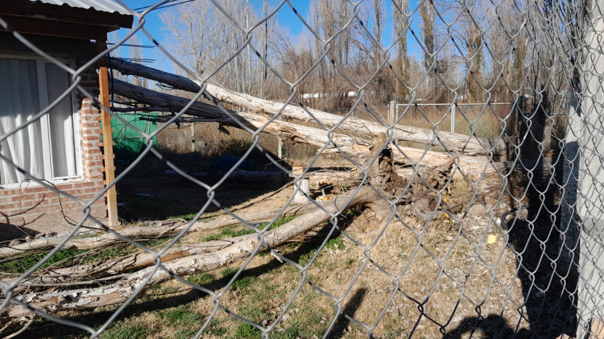 Los álamos de importante altura generaron importantes daños a la vivienda ubicada en Maquinchao 7452, del barrio Valentina Rural Sur.