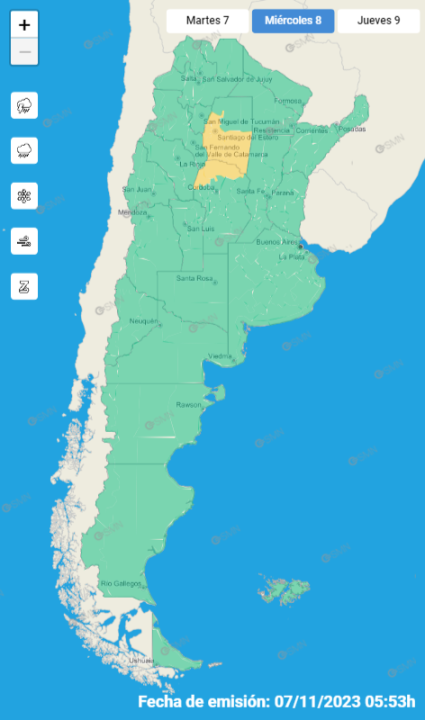 El Servicio Meteorológico Nacional (SMN) detalló que el nivel amarillo representa a «posibles fenómenos meteorológicos con capacidad de daño y riesgo de interrupción momentánea de actividades cotidianas.»