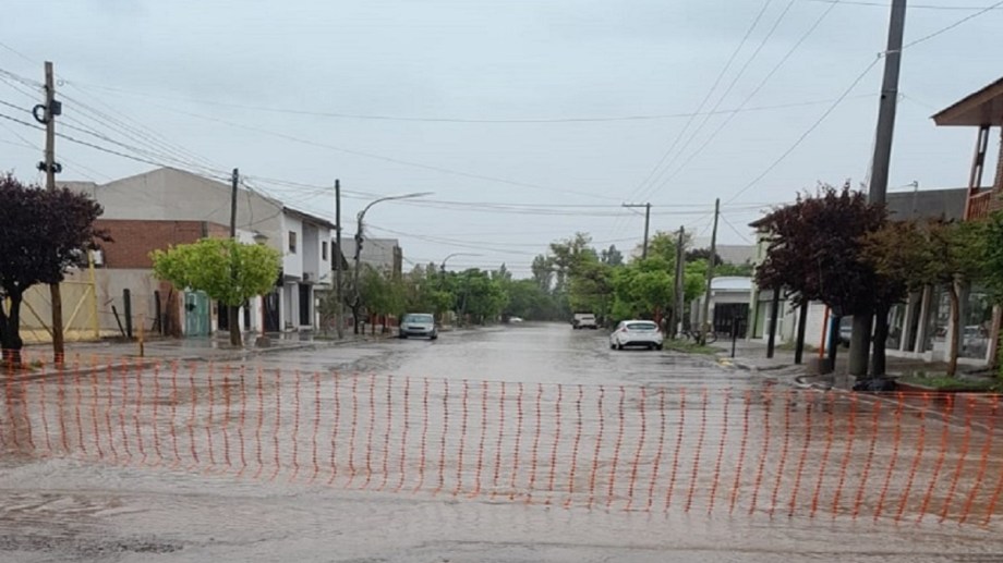 Alerta por lluvias: cortaron una calle en el centro de Cinco Saltos por el nivel del agua