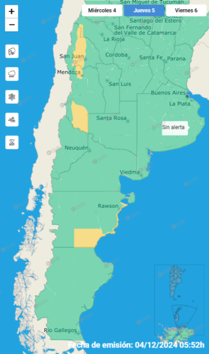 En Chubut también se anuncia una alerta amarilla, aunque en esta ocasión el fenómeno meteorológico a tener en cuenta será la lluvia.