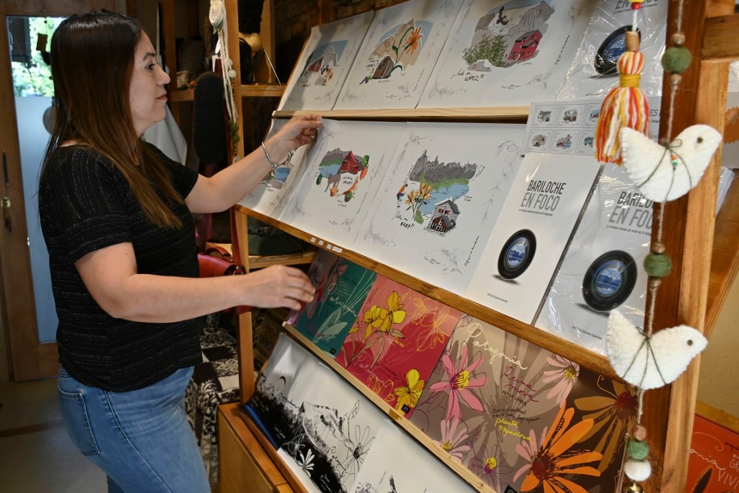 Además hay una línea de “arte en ilustración”, en manos de Irena Zuzek que plasma en dibujos y pinturas parte de la identidad de Bariloche como las siluetas de los cerros, los refugios de montaña, las aves autóctonas, la flora y con un proceso de impresión esa creación se transforma en lonas de playa, cortinas, bolsas, manteles individuales, toallas, repasadores, entre otros productos.