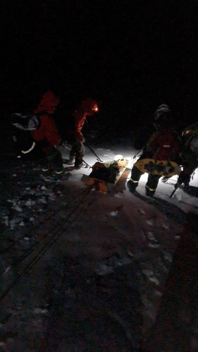 En total trabajaron cuatro cuadrillas. Dos de ellas del área de Incendios, Comunicaciones y Emergencias ICE, otra de guías de montaña y otra de Gendarmería estas últimas habrías realizado las primeras atenciones al andinista.