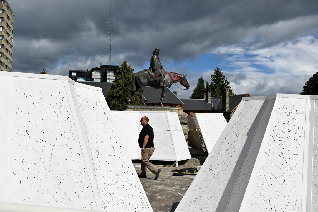 La enorme estructura de hierro blanco calado, por donde se filtrarán las luces de colores a partir del 8 de Diciembre, cuando se encienda el gigante árbol en el Centro Cívico, comenzó a ser montada hoy y largan así los preparativos para vivir la Navidad en Bariloche, una festividad que desde hace varios años atrae a miles de turistas.