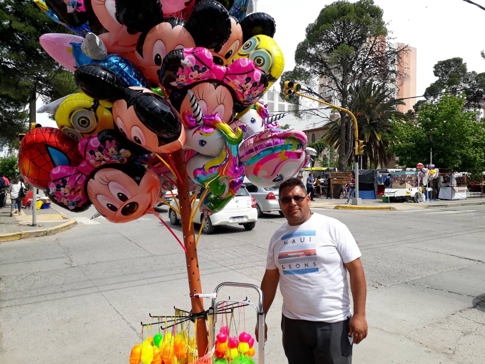 Por su parte, Nicolás que llegó de Mendoza con su puesto de globos para la feria dice que seguirá con su puesto y que lo va a ver a través del celular.