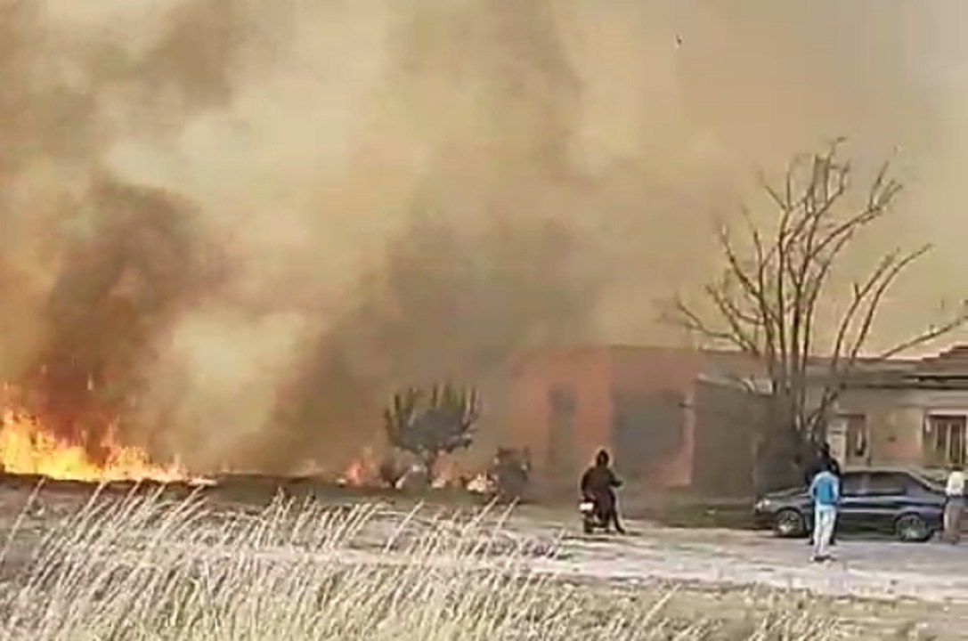 Bomberos voluntarios trabajaron en un incendio de pastizales que comenzó pasadas las 15 y afectó la zona oeste de Roca, a metros de unas casas, en el barrio 77 Viviendas.