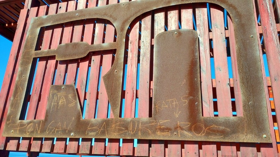 El cartel institucional de Río Negro que se encuentra colocado en uno de los miradores Balcones del Mar, resultó vandalizado esta semana con escritos con la leyenda «ratas pongan basureros». La estructura está ubicada en la bajada de Echandi del Camino de la Costa, sobre la Ruta provincial N°1 , entre La Lobería y Bahía Creek, en jurisdicción de Viedma.