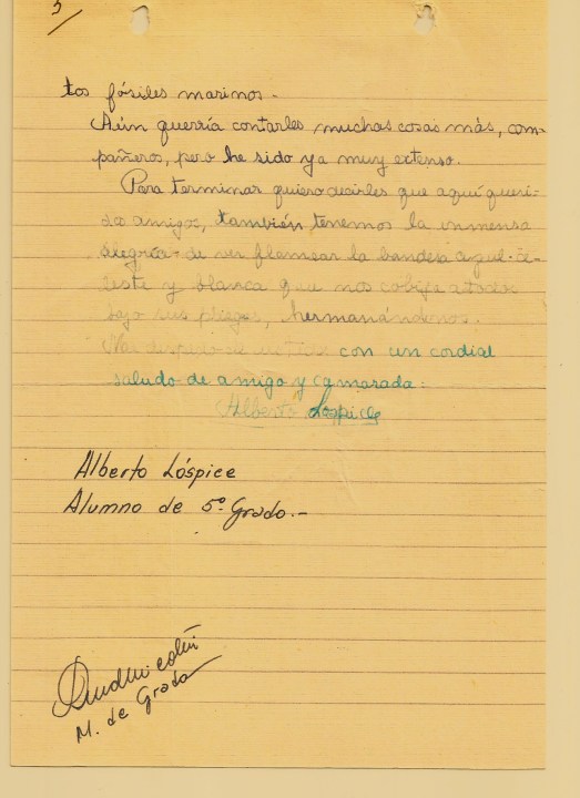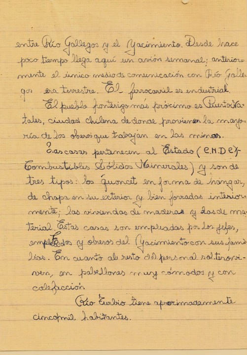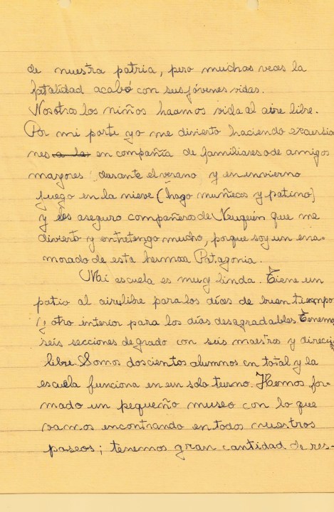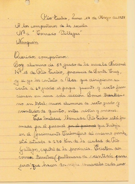 Alberto, de Río Turbio, les contó que su mayor riqueza era el carbón que trabajaban los mineros arriesgando su vida, con alegría y confianza, aunque «la fatalidad muchas veces acabó con esos jóvenes». Y finalmente, desde Entre Ríos, Gladys le habló a Héctor, de Neuquén, a quien no conocía pero que por la actitud simpática de su misiva, lo consideraba como “a un amigo más que vive en nuestra dilatada Patria, bajo el mismo sol y cobijados por la misma bandera azul y blanca”.