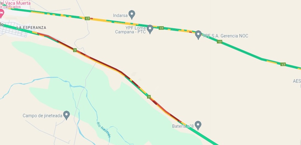 Choque en Vaca Muerta: ocurrió sobre Ruta 7 en cercanías al acceso Batería 3