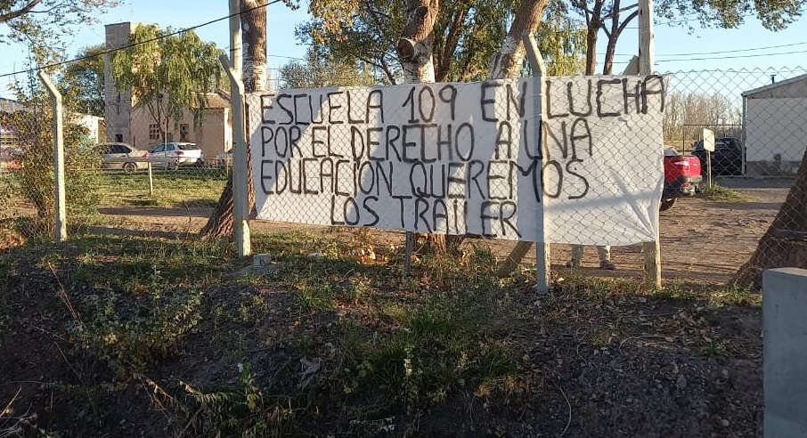 La comunidad educativa de la escuela 109 solicita que lleguen los tráileres que ofreció el ministerio de educación. Habrían informado que tardarían entre 20 y 25 días en llegar, pero aún no hay novedades.
