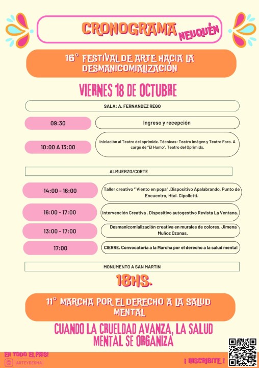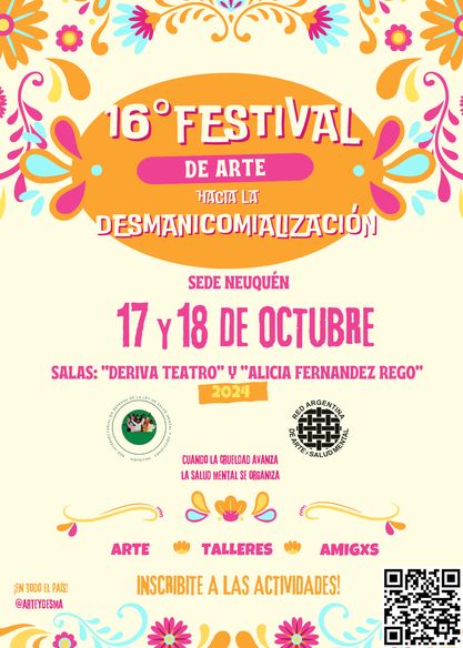 Durante el 16º Festival y Congreso de Arte y Desmanicomialización habrá charlas, talleres y obras de teatro en Neuquén. El 18 de octubre habrá, como cierre, una marcha por el centro de Neuquén.