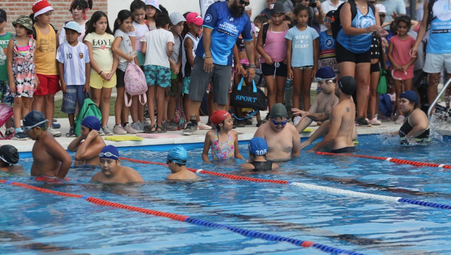 Además del corte de cintas en el natatorio, este lunes se inició la quinta colonia de vacaciones municipal que funcionará en Gimena Lopez, pero que tendrá sus actividades de natación en la reciente pileta inaugurada.