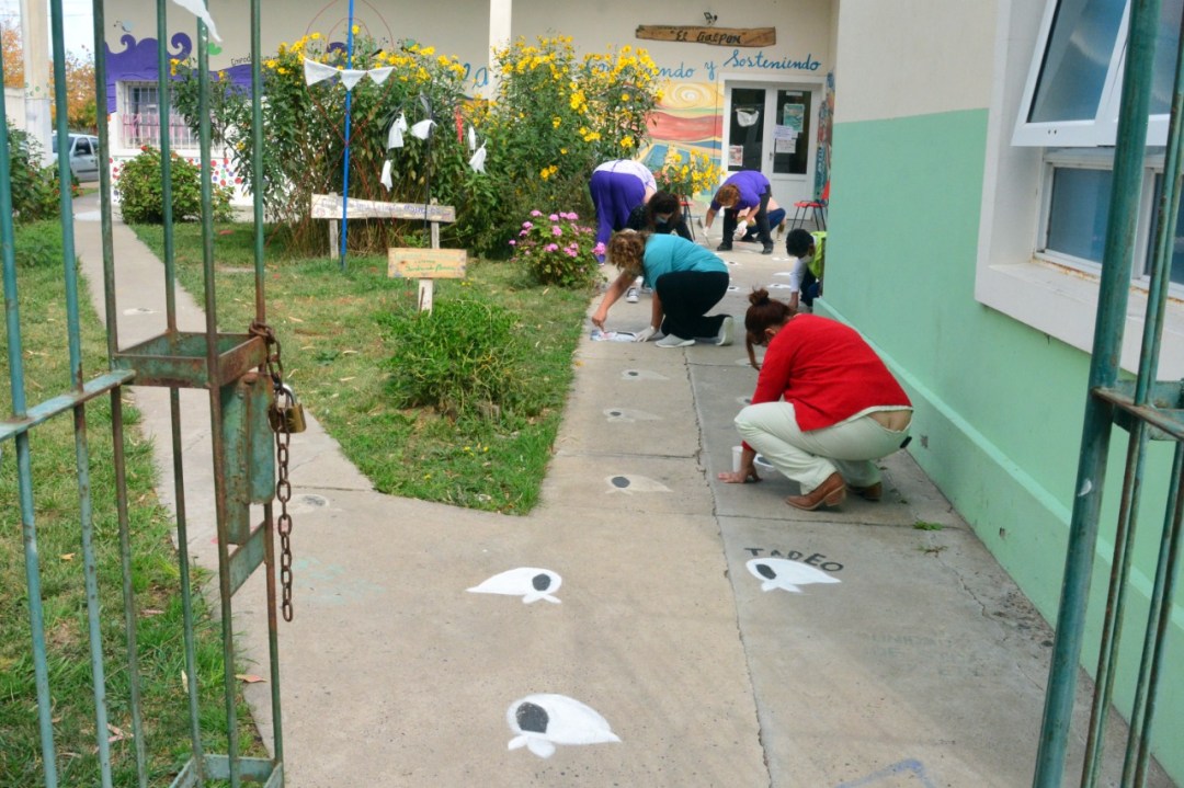 Profesionales del Galpón Amarillo que funcionan en el hospital Artémides Zatti de la capital provincial realizaron el repintado de los pañuelos blancos que simbolizan la lucha de las Madres de Plaza de Mayo en la primera actividad por el Día de la Memoria, por la Verdad y la Justicia el miercoles.