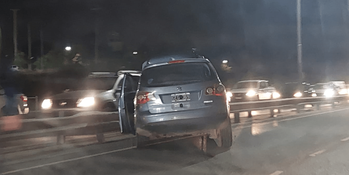 Pasando unos 50 metros del puente, sobre la misma vía se registró otro siniestro. Por causas que aún se desconocen, un auto impactó contra el guardarraíl central de la Ruta 7 y quedó incrustado en la misma.