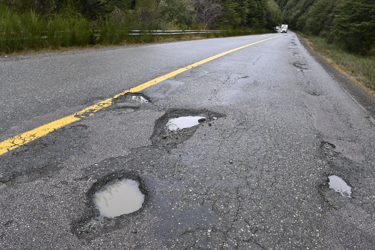 Vialidad Nacional en primavera realizó mejoras, con bacheo y carpeta asfáltica en los sectores más complicados, y dio un respiro en verano y otoño con una ruta en condiciones aceptables para transitarla. Pero ahora, tras las intensas lluvias, nevadas y heladas, volvieron a desprenderse los arreglos y a aflorar los pozos por sectores, a partir del lago Guillelmo hacia el sur, donde se intercalan trayectos en buen estado, donde es evidente que se colocó una carpeta asfáltica, y otros con un deterioro avanzado, que obligan a los automovilistas a invadir el carril contrario o descender abruptamente a la banquina, con los riesgos que implica, según constató ayer diario RÍO NEGRO.