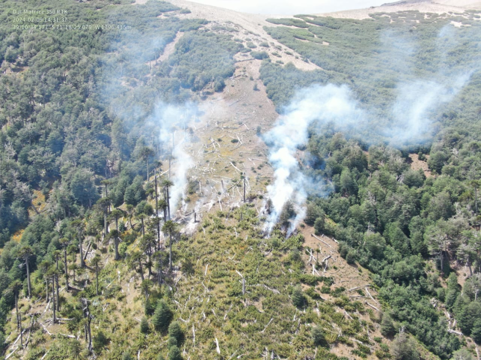 El organismo informó el trabajo de recorredores del Proyecto Pewen, personal del área técnica, administrativos y radioperadores, así como también de Guardaparques de las zonas y un avión hidrante. Las condiciones del clima tampoco permitieron el despegue de un helicóptero.