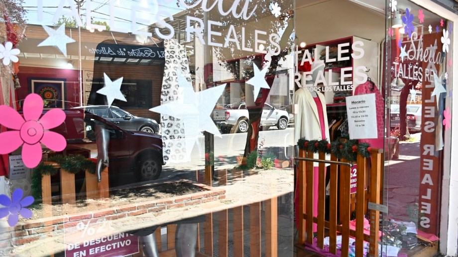 “Talles reales” se lee en el frente de un comercio ubicado en la calle Elflein al 100 en el centro de Bariloche. Nora Schanahan abrió el local 11 años atrás cuando no conseguía ropa para ella misma.