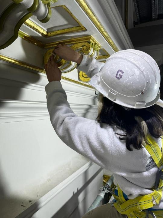 Elisa se sube al andamio a 15 metros de altura en el interior de la Basílica de San Francisco. Se acomoda entre columnas y molduras y, con las herramientas adecuadas, comienza con el trabajo de restauración. Con agujas y bisturíes se enfrenta al desafío de intervenir una pieza arquitectónica única sin alterar su aspecto histórico. «Amo lo que hago y disfruto mucho de la tarea minuciosa que es restaurar estas piezas», manifestó.