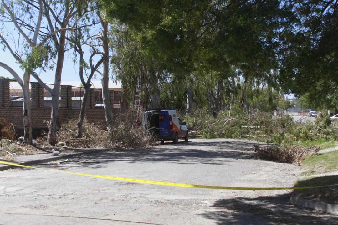 Unos operarios podaban árboles en Viedma y una rama cortada golpeó a un ciclista, causándole la muerte.