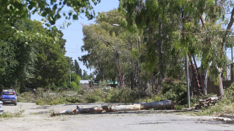 Unos operarios podaban árboles en Viedma y una rama cortada golpeó a un ciclista, causándole la muerte.