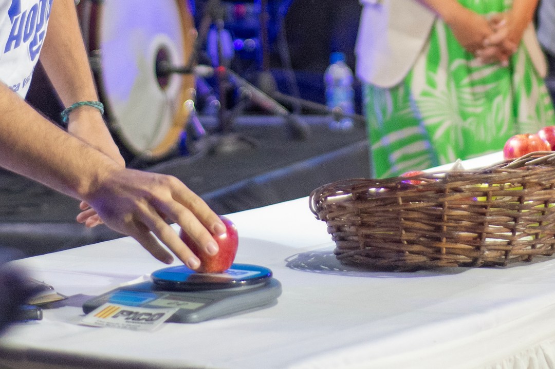 Cada concursante elige una manzana, estima su peso y luego la lleva a la balanza: quien más se aproxime al peso exacto gana un Auto 0 km. También hay premios para el segundo y tercer puesto: una Moto Navi 110 0Km y un Smart TV de 40´´.