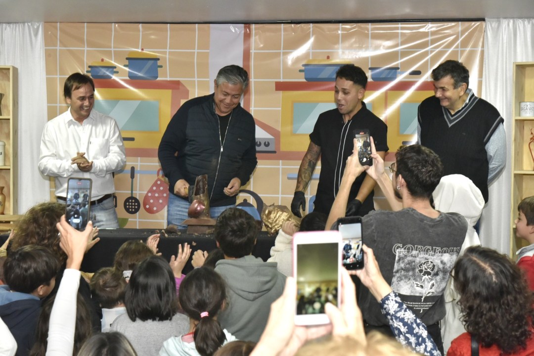 El gobernador Rolando Figueroa participó del cierre del evento, donde estuvo a cargo de romper la escultura para poder compartir el chocolate entre el público presente. Además, se tomó su tiempo para recorrer la feria y conversar con cada uno de los emprendedores.