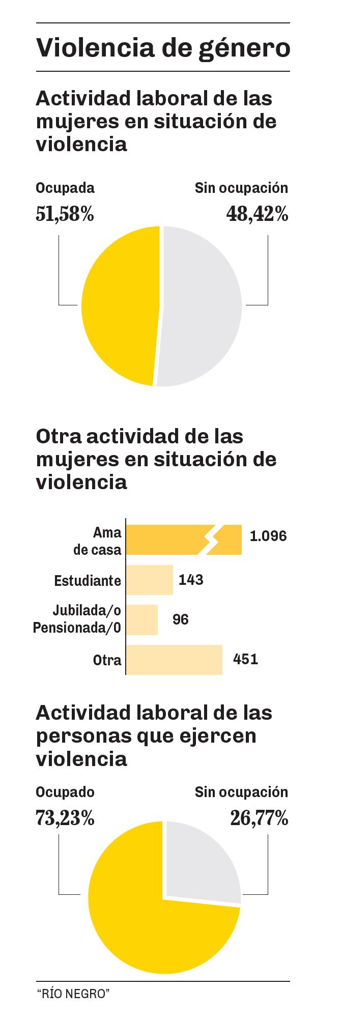 De un universo de 2410 registros, sólo 1243 víctimas declararon tener una actividad laboral. En contraposición, siete de cada diez personas que ejercieron violencia estaban ocupadas.