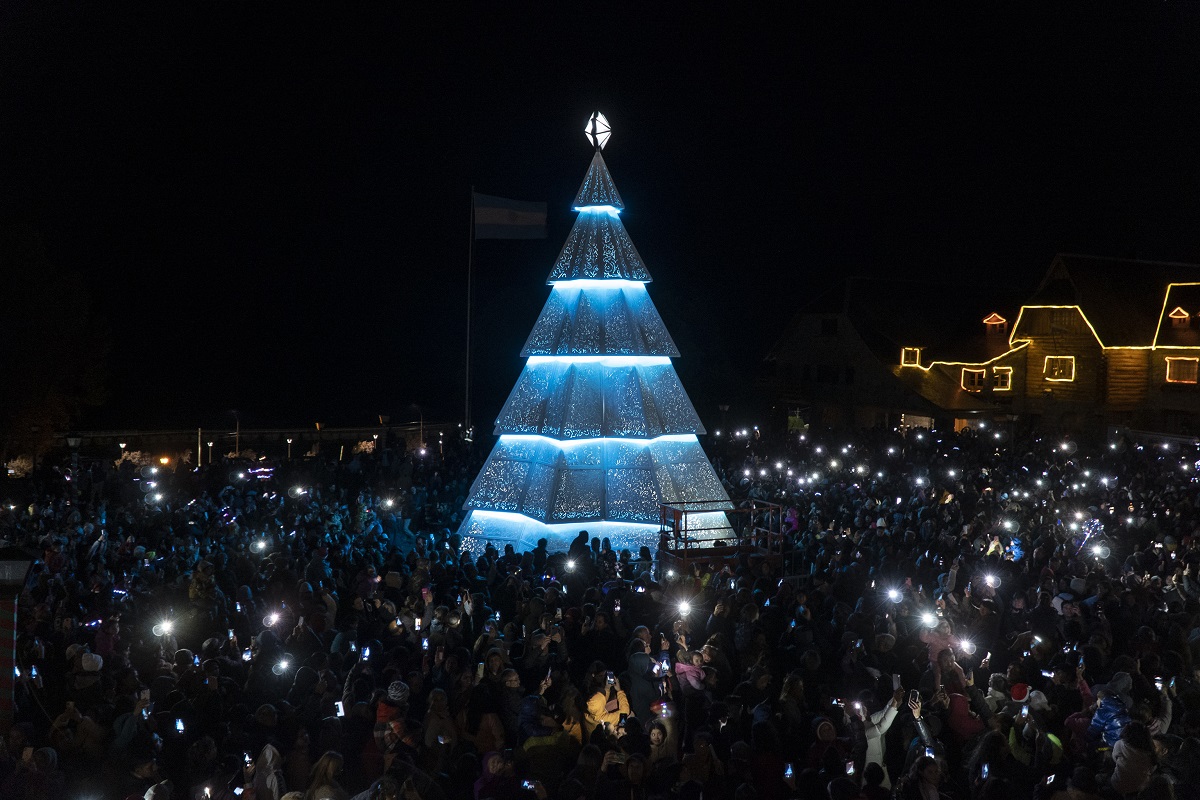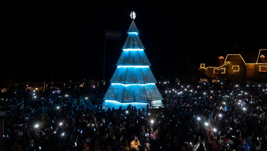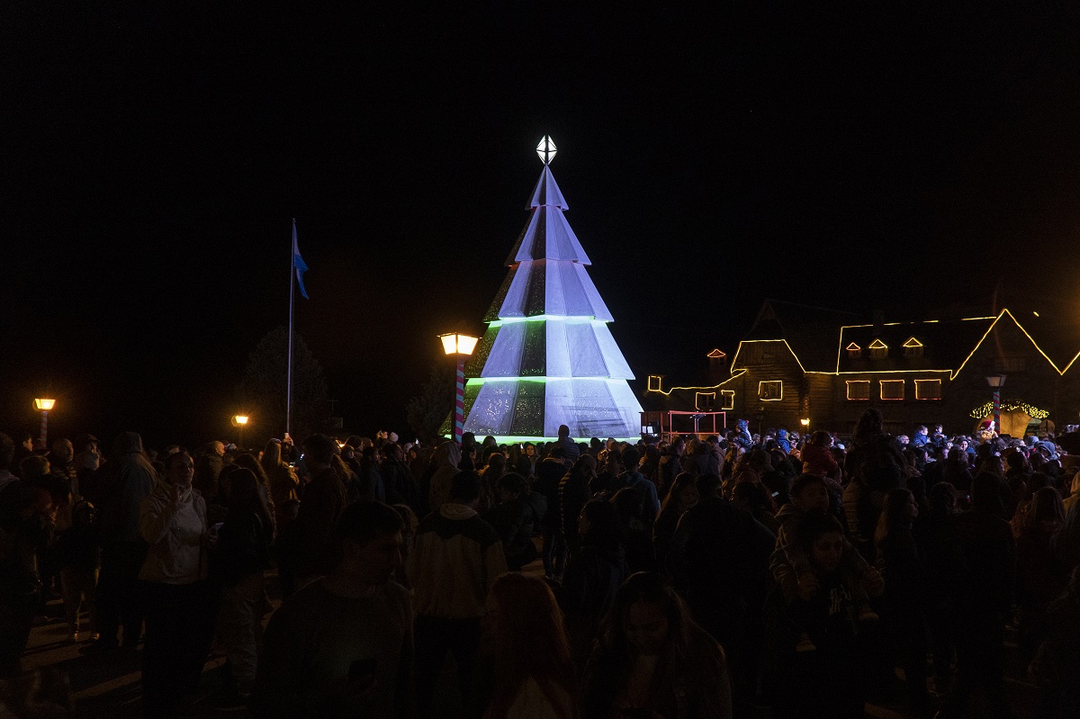 “¡Papa Noel! ¡Empecemos a llamarlo!”, invitó el conductor del evento en un Centro Cívico colmado de turistas y barilochenses. De pronto, Papa Noel apareció en el balcón del Municipio, las luces de la plaza se apagaron y empezó el conteo regresivo. “10, 9, 8…”, coreaba la gente. Una vez más, como desde hace 10 años, las luces del enorme pino navideño se encendieron y el público aplaudió emocionado. “¡Arranca la Navidad en Bariloche!”, anunció el conductor.