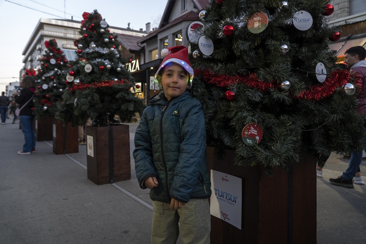 Carolina Barbano, de San Martín de los Andes, observaba el espectáculo junto a su pareja y sus dos hijos. “Vinimos a pasear por el fin de semana largo y nos enteramos de esta movida navideña. Me encanta la decoración”, señaló la mujer.