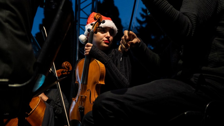 Se encendió esta noche, con una plaza colmada de residentes y turistas. La Orquesta Filarmónica de RíoNegro le puso color a la previa.